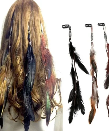 $16.49 – $17.63Price range: $16.49 through $17.632024 New Fashionable Boho Feather Headband Wig Beaded Feather Headdress Handmade Hair Clip Girl Hair Accessories High Quality