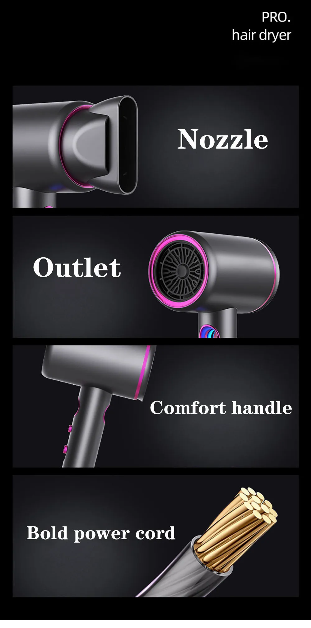 2400W Hair Dryer Hot and Cold Wind with Diffuser Conditioning Powerful Blower Heat Constant Temperature Blowdryer Dry Quickly