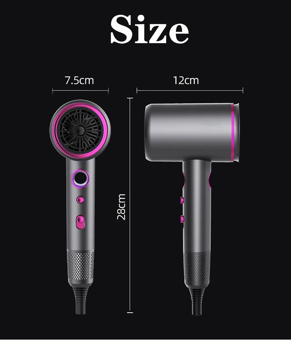 Hair dryer net weight: about 600g, compact and light, strong wind, easy to shape
